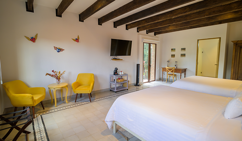Elegante y confortable habitación hasta para 4 personas con dos camas Queen Size, baño completo, escritorio, closet y balcón. Tiene una decoración única y el mobiliario fue diseñado a medida para las necesidades de nuestros huéspedes.
