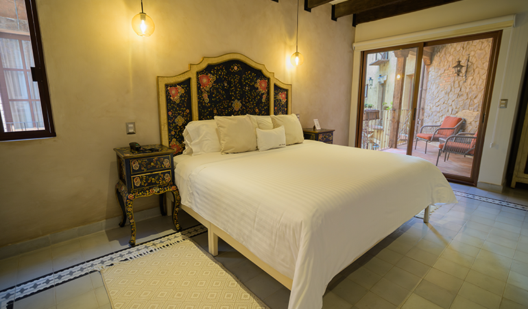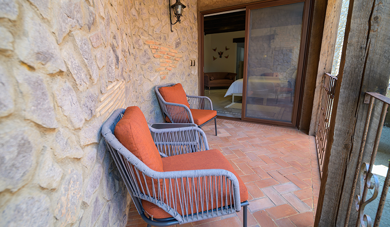 Amplia y confortable suite para 2 personas con cama King Size, baño completo, closet y terraza, ideal para tener una escapada romántica en pareja, mientras disfrutas del máximo confort en instalaciones que asemejan la vida en la Toscana.