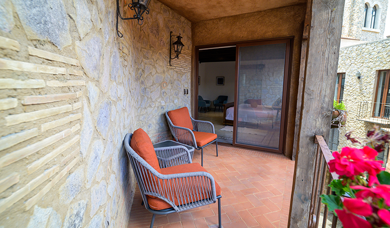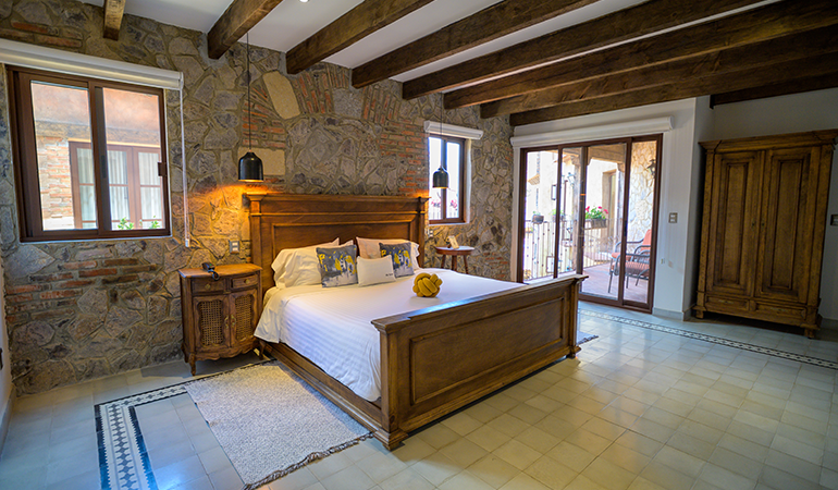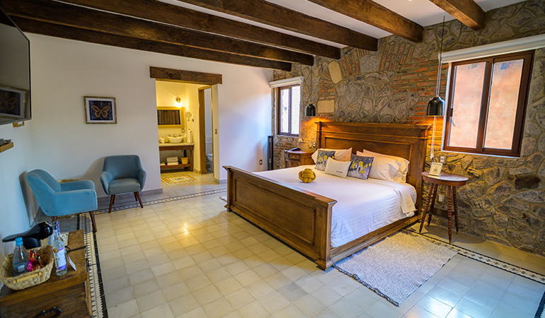 Amplia y confortable suite para 2 personas con cama King Size, baño completo, closet y terraza, ideal para tener una escapada romántica en pareja, mientras disfrutas del máximo confort en instalaciones que asemejan la vida en la Toscana.