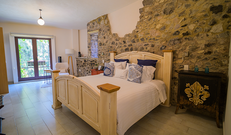 Amplia y confortable suite para 2 personas con cama King Size, baño completo, closet y balcón, ideal para tener una escapada romántica en pareja, mientras disfrutas del máximo confort en instalaciones que asemejan la vida en la Toscana.